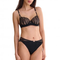 Sophistication, élégance moderne et séduction subtile s'entremêlent dans cette série. Conçue pour une femme sûre d'elle et élégante, qui apprécie les détails et l'excellence artisanale. Tricot recyclé technologiquement sophistiqué avec un éclat cristallin, traité de manière à permettre des ourlets fins et ainsi une esthétique moderne impeccable et un confort maximal. Associé à un ourlet brodé sélectionné dans un motif organique stylisé, une dentelle fine délicate et sophistiquée et un tricot en maille transparente séduisante, il représente une harmonie entre luxe, élégance et confort. Conception sans coutures avec un jeu de dentelle fine et de bandes étroites avec des décorations métalliques.