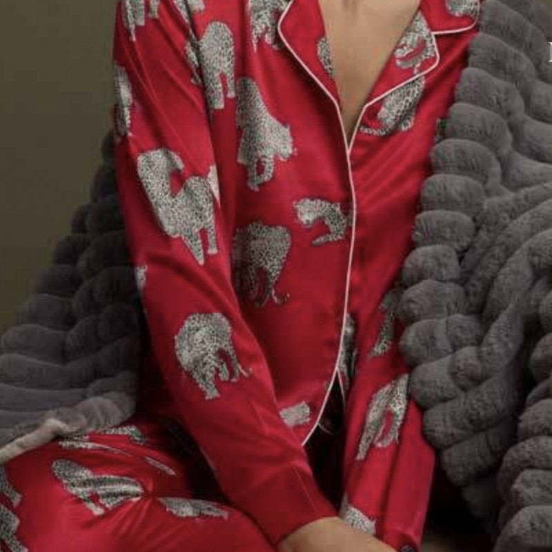Pyjama en satin, sensuelle esprit animalier panthère sur une note ultra glamour.